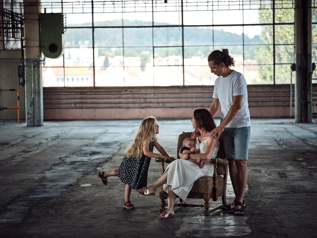 industriál - netradiční rodinné focení ve staré Přádelne